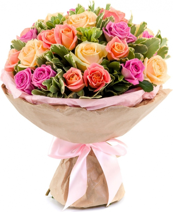 2 розовых роз, 1 кремовая роза, 2 коралловых роз, зелень, упаковка, лента3 розовые розы, 3 кремовые розы, 3 коралловые розы, зелень, упаковка, лента7 розовых роз, 7 кремовых роз, 7 коралловых роз, зелень, упаковка, лента
